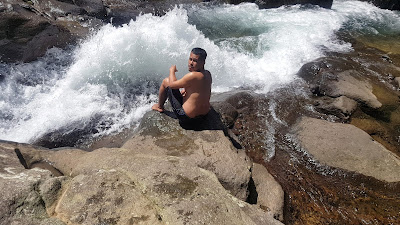 Karena kami tidak menyewa melampung, jadilah kami hanya berenang di aliran curug ini. Begitu mendekat sedikit saja ke area curug langsung terdengar bunyi peluit petugas yang menyuruh kami menjauh.